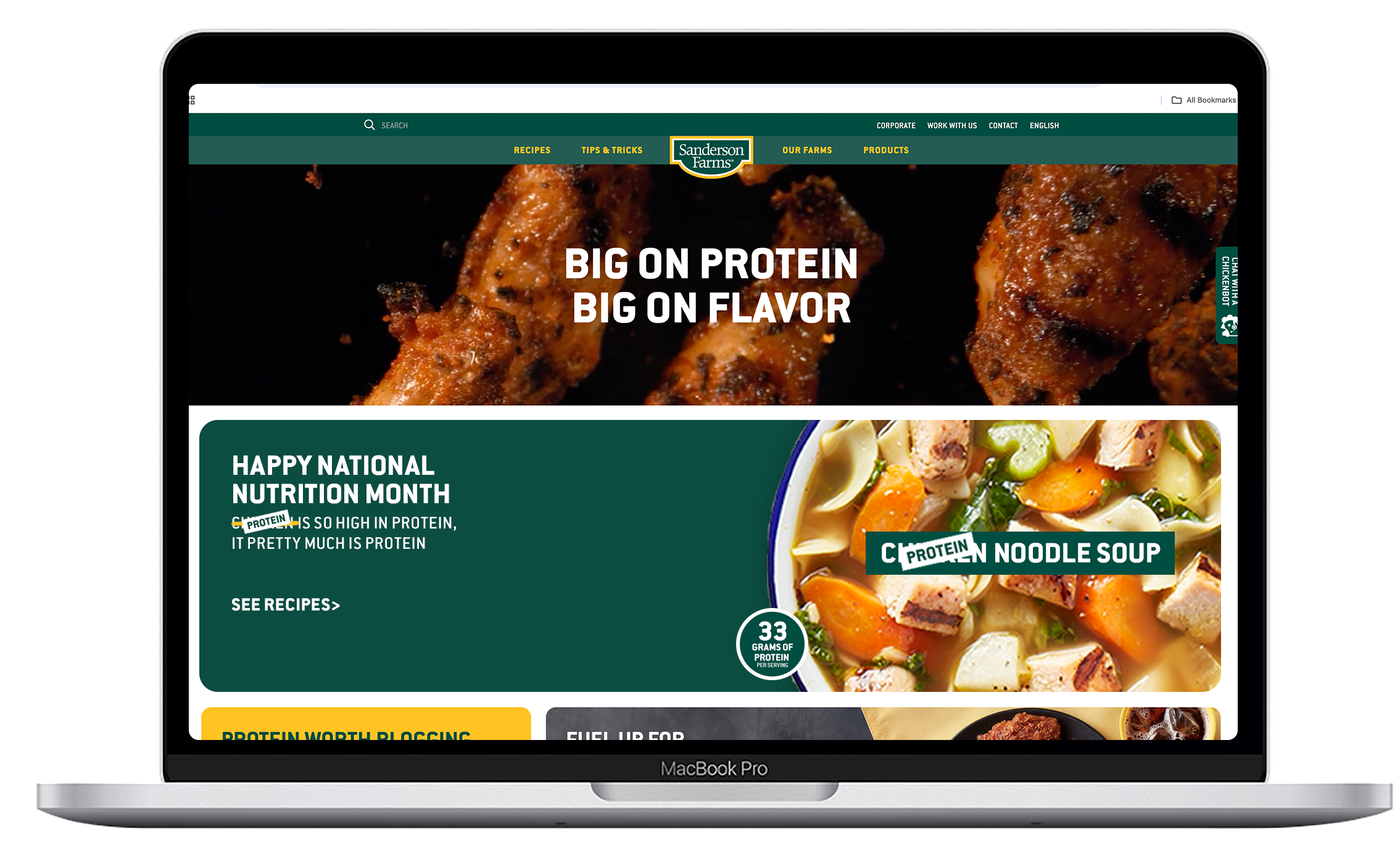 For the month of March, we reskinned the site, replacing every instance of the word “chicken” with “protein” to remind people that chicken is protein.